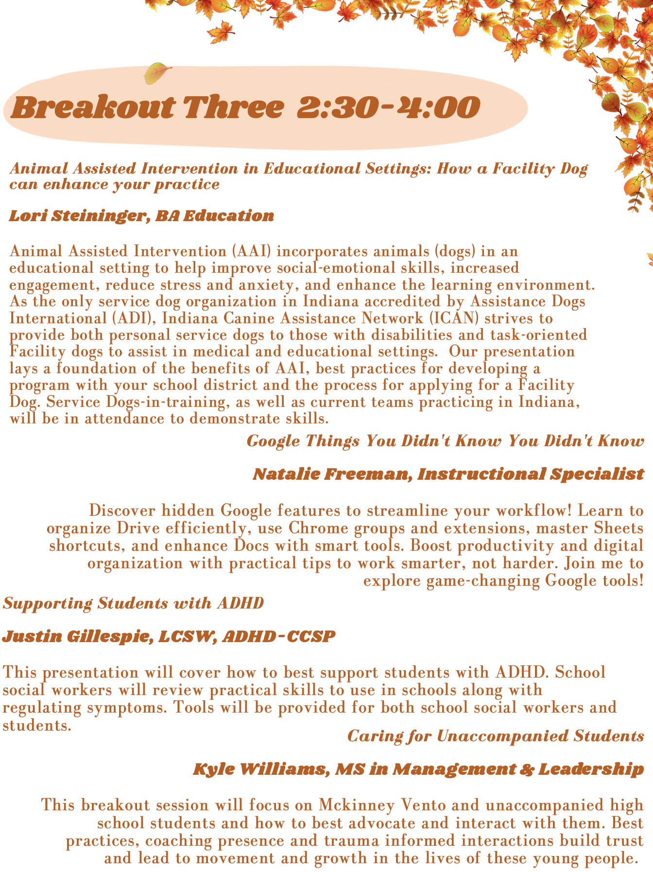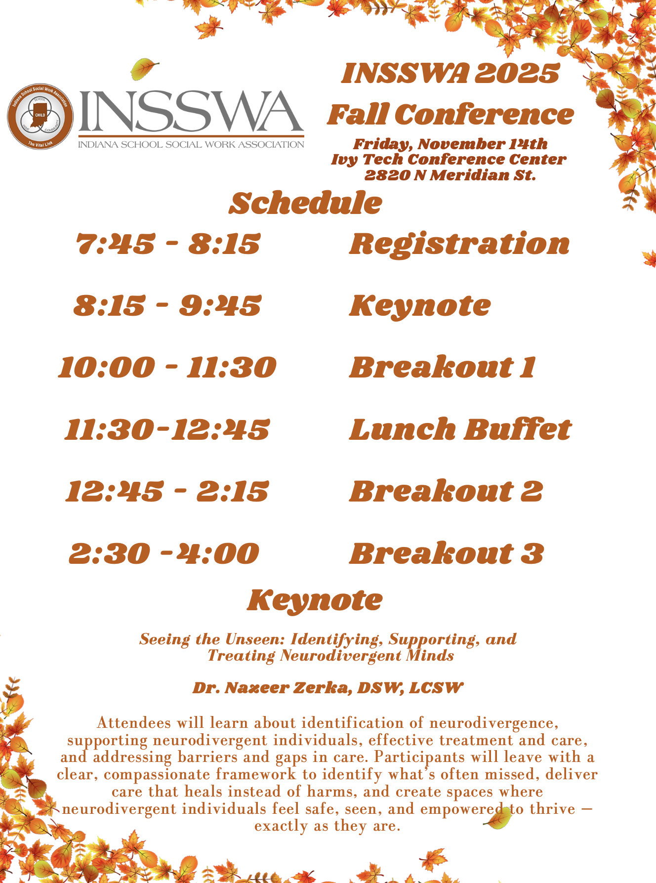 Join INSSWA for our 29th annual fall conference titled "Fostering Belonging: Creating Systems of Support for Learners of All Abilities". Our conference committee has worked hard to organize an educational and engaging conference that will enhance your social work practice!